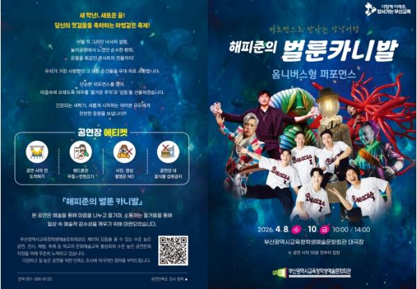 부산광역시교육청학생예술문화회관은 오는 8일부터 10일까지 학생예술문화회관 대극장에서 초·중·고 학생 2,400여 명을 대상으로 ‘해피준의 벌룬카니발’ 공연을 개최한다. ‘예술로, 미래로!’를 슬로건으