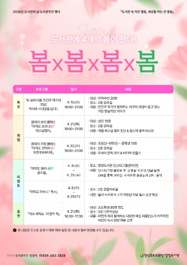 경상북도교육청 영양도서관은 2026년 도서관의 날·도서관주간을 맞아 ‘도서관 속 작은 펼침, 세상을 여는 큰 열림’을 공식 표어로 지역주민을 위한 강연, 체험, 공연, 이벤트를 운영한다. 이번 행사로 ▲…