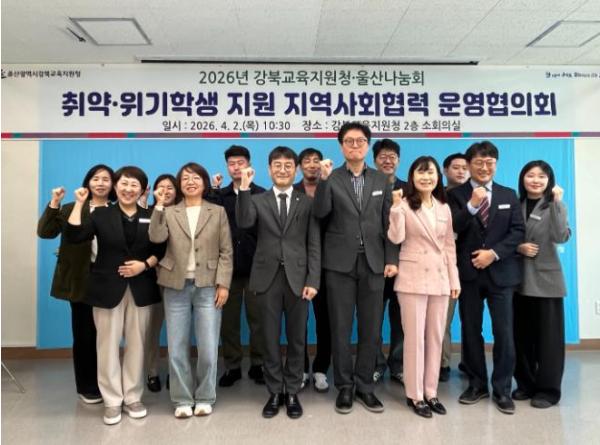울산 강북교육지원청은 지난 2일 소회의실에서 울산나눔회와 함께 취약·위기 학생 지원을 위한 지역사회 협력 운영협의회를 열고 협력 방안을 논의했다. 이번 협의회는 지역사회와의 협력을 바탕으로 취약·