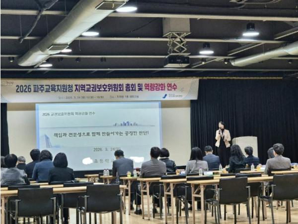 경기도파주교육지원청은 2026년 3월 24일 '2026 지역교권보호위원회 총회 및 역량강화 연수'를 개최했다.이번 총회는 지역교권보호위원회의 운영 방향을 공유하고 위원 간 협력 체계를 강화하기 위해 마련됐
