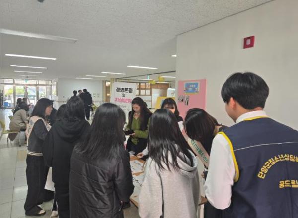 충청북도단양교육지원청은 3월 24일 단양소백산중학교에서 생명존중 및 생명지킴이 캠페인을 실시했다. 이번 캠페인은 청소년들이 선호하는 ‘탑로더 꾸미기’ 형태를 활용해 진행됐다. 증명사진 크기에 생