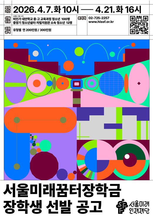 서울미래인재재단은 기존 서울꿈길장학금의 지원 대상을 확대하고 유형을 세분화하여 ‘서울미래꿈터장학금’을 신설한다. 재단은 비인가 대안학교 재학생은 물론 가정 밖 청소년까지 총 112명을 선발하고, …
