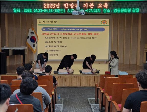충북 영동군에서는 민방위대원 1,358명을 대상으로 민방위사태 대비 역량 강화를 위한 2026년 민방위 교육을 6일부터 8일까지 3일간 실시한다.민방위대장을 대상으로 6일에 특별교육을, 1~2년 차 대원을 대