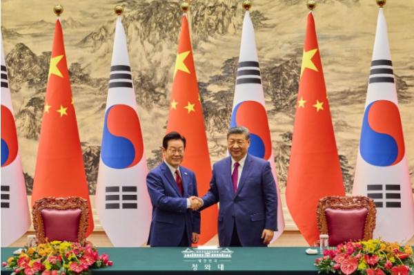 중국을 국빈 방문 중인 이재명 대통령은 5일(현지시간) 오후 베이징에서 시진핑과 정상회담을 갖고 한중 관계 전면 복원과 경제협력 확대를 위한 구체적 성과를 도출했다.양 정상은 한중 관계 전면 복원에