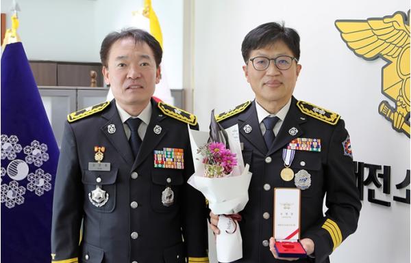 대전소방본부는 각종 재난 현장에서 시민의 생명과 안전을 지켜온 재직 30년 장기 근속 소방공무원을 대상으로 ‘소방근속기장’을 수여했다.소방근속기장은 ‘소방공무원 기장의 수여 및 패용에 관한 규정