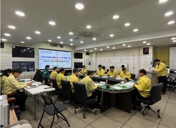 고창군이 2일 군청 재난안전상황실에서 김영식 부군수 주재로 행정안전부, 전북특별자치도와 함께 재난안전대책본부 회의를 열고, 아프리카돼지열병(ASF) 확산 방지를 위한 방역관리 상황을 점검했다.회의는