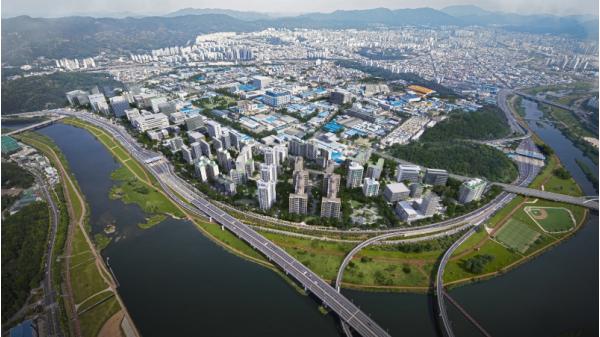 대전 대덕구 대화동 461-1번지 일원 대전산업단지 재생사업지구 활성화구역의 준공이 완료됐다. 준공된 활성화구역 1단계 사업은 대전산단 재생사업의 일환으로 갑천변 노후된 지역을 전면 수용하여 추진된