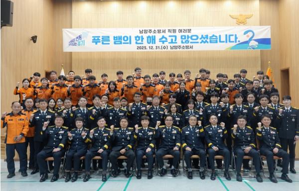 남양주소방서는 31일, 본서 대회의실에서 2025년 한 해를 마무리하는 종무식을 개최했다고 밝혔다.이번 행사는 남양주소방서장을 비롯한 직원들과 표창 수상자 등 약 70여 명이 참석한 가운데, 을사년 한 해