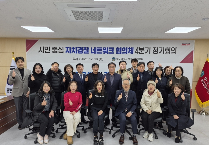 대구광역시 자치경찰위원회는 12월 16일 ‘2025년 4분기 자치경찰 네트워크 협의체 정기회의’를 열고, 올해 활동을 종합적으로 점검했다.이번 회의에서는 네크워크 협의체 우수 활동 회원 12명에게 감사패…