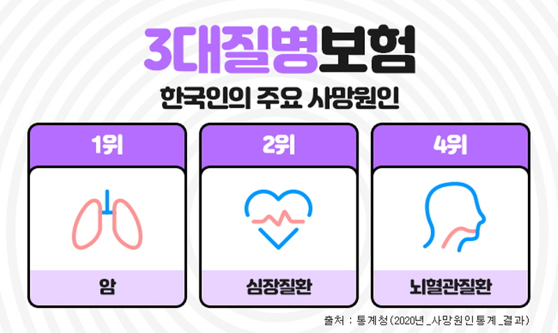 한국인의 주요 사망원인중에 암, 뇌혈관질환, 심혈관질환은 흔히 3대질병이라 일컬어지며 살아가면서 가장 먼저 대비해야 하는 중대질병으로 항상 강조되고 있다. 이들 질병에 미리 대비하기 위해 가입하는 …
