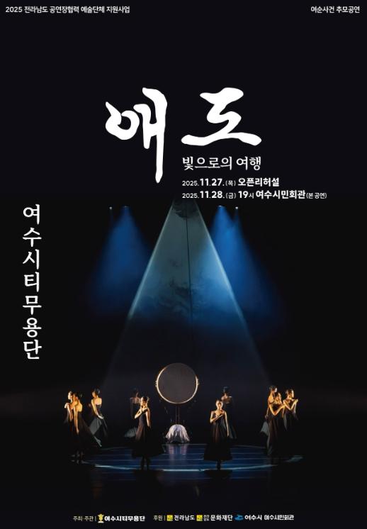 하고 희생자들의 넋을 기리는 창작뮤지컬·창작무용극 ‘애도-빛으로의 여행’을 무대에 올린다고 밝혔다.이번 공연은 2025 전라남도 공연장협력 예술단체 지원사업에 선정된 작품으로 오는 11월 27일과 28일