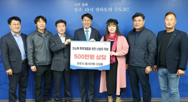 전주지역 봉사단체인 ‘디딤돌’(회장 박지윤)은 17일 전주시장실을 찾아 지역 저소득 취약계층 20세대에 전달할 예정인 500만 원 상당의 등유 쿠폰 사용권을 기탁했다. 지난 2022년 9월 창립된 봉사단체 ‘…