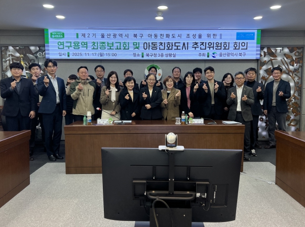 울산 북구는 17일 구청 상황실에서 북구 아동친화도시 조성을 위한 연구용역 최종보고회 및 아동친화도시 추진위원회를 개최했다.회의에서는 (재)산업경제발전연구원 손지강 부원장이 용역 추진결과를 보고…