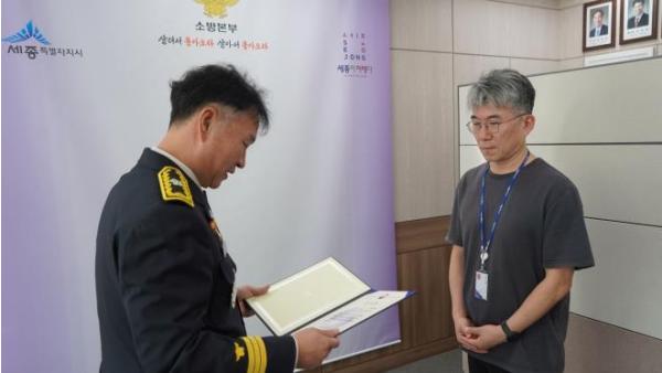 세종소방본부가 지난 10일 청주하나병원과 나준호 의료지도의사에게 소방청장 감사장을 수여했다.이들은 응급환자 이송 지연 해소 및 구급서비스 향상에 기여한 공로로 높은 평가를 받았다.청주하나병원은