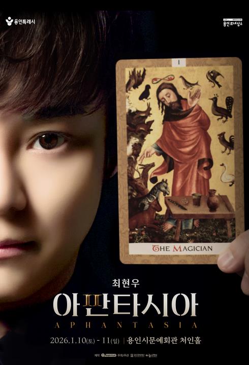 용인문화재단은 2026년 1월 10일과 11일 양일간 용인시문예회관 처인홀에서 마술사 최현우의 공연 '아판타시아'를 총 4회 개최한다.'아판타시아'는 최현우가 직접 기획·연출한 작품으로, 관객이 공연의 흐…