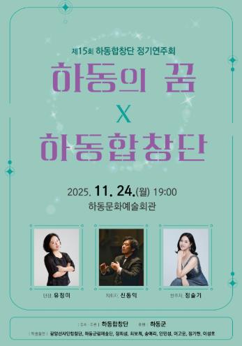 오는 11월 24일 저녁 7시, 하동문화예술회관 대공연장에서 ‘제15회 하동합창단 정기연주회’가 열린다. 올해의 공연은 ‘하동의 꿈’을 주제로, 하동의 아름다운 자연과 따뜻한 사람들의 삶을 그린 음악극 …