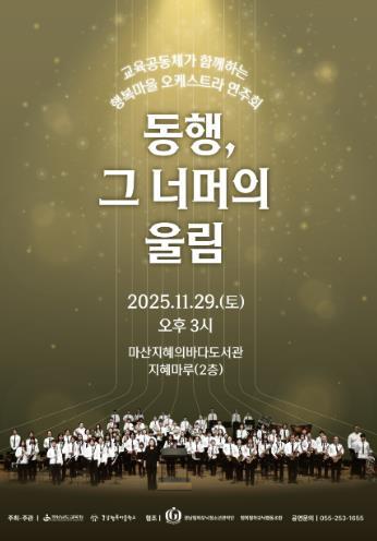 경상남도교육청은 오는 29일 오후 3시, 마산지혜의바다도서관 지혜마루에서 경남행복마을학교 오케스트라 연주회를 개최한다.이번 연주회는 ‘동행, 그 너머의 울림’이라는 주제로 청소년을 포함한 교육공