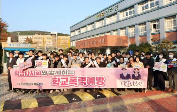 울산 강북교육지원청은 26일 오전 8시 동구 대송중학교 정문에서 ‘학교폭력 예방 홍보활동’을 펼쳤다. 이번 홍보활동은 학교와 지역사회가 함께 참여해 학교폭력이 없는 안전한 학교를 만들고자 추진됐다