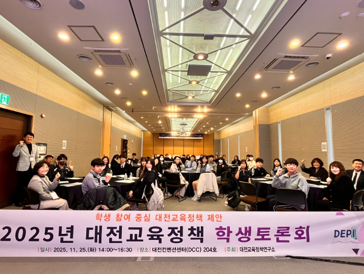 대전교육정책연구소는 11월 25일 오후 2시 대전컨벤션센터(DCC) 제1전시장 204호에서 2025년 대전교육정책 학생토론회를 개최했다고 밝혔다. 이번 토론회에는 대전교육정책 학생모니터단 30명을 포함해 학생…