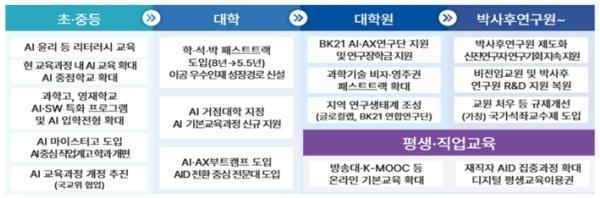 교육부는 11월 10일 인공지능(AI) 대전환 시대를 선도하고, 국민 모두의 인공지능(AI) 역량 함양을 지원하기 위한 「모두를 위한 인공지능(AI) 인재양성 방안(AI for All)」을 발표했다. 글로벌 패권 경쟁