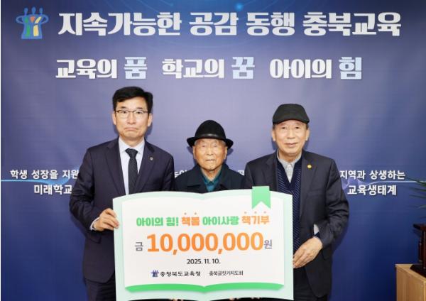 충청북도교육청은 10일 오전, 교육감실에서 '아이의 힘! 책봄 아이사랑 책기부' 기탁식을 개최했다.이날 기탁식에서 충북글짓기지도회는 학생들의 독서 활동을 돕기 위해 1천 만 원을 기부했으며, 이 기부금