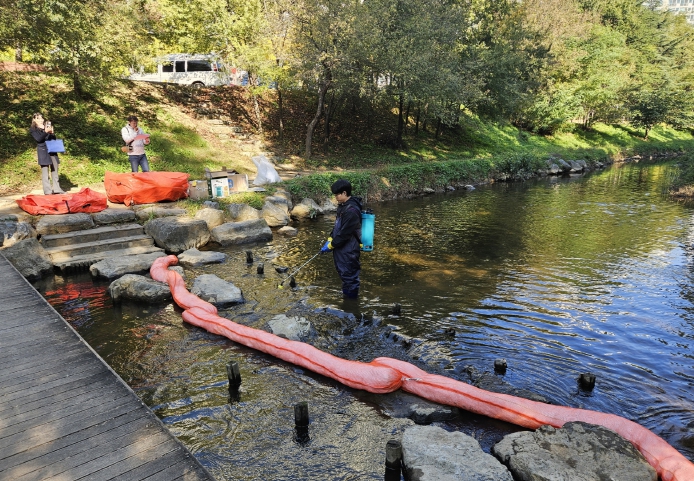 인천시 남동구는 만수동 장수천에서 수질오염사고 대응 역량 강화를 위한 자체 방제 훈련을 했다고 3일 전했다.