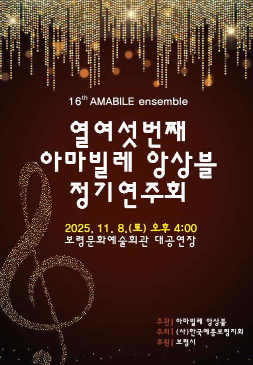 보령시는 아마빌레 앙상블이 오는 11월 8일 보령문화예술회관 대공연장에서 제16회 정기연주회를 개최한다고 밝혔다.