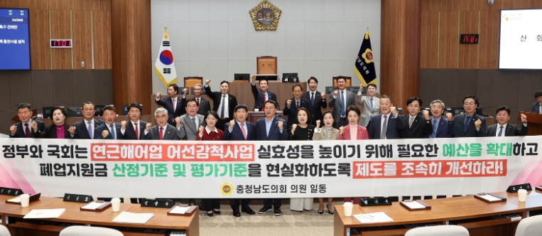 충남도의회가 연근해어업의 구조개선과 어업인 생계 안정을 위한 제도 개선을 정부에 강력히 촉구했다.