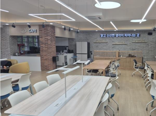 특히, 교실 구조의 혁신을 통해 학생 이동과 선택 중심의 고교학점제 운영이 원활히 이뤄지도록 ▲ 가변형 교실 ▲ 온·오프라인 공동교육과정 운영 공간 ▲ 홈베이스 ▲ 온라인 학습카페 등 다양한 형태의 학점제형 학습공간이 구축됐다.