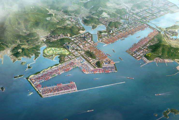 진해신항은 2040년까지 총 14조 6,600억 원을 투입해 8,000TEU급 초대형 컨테이너선 21선석을 갖춘 대규모 항만으로 조성된다.
