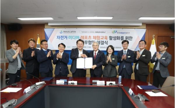 경상남도교육청은 6일 경남교육청 본관에서 창원레포츠파크와 학생 건강을 증진하고 건전한 여가 문화를 정착하기 위한 업무 협약을 체결했다.