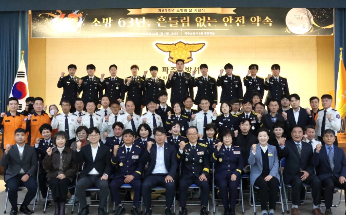 김명찬 파주소방서장은 “소방의 날은 국민 안전을 위해 헌신해 온 모든 소방인을 기억하고 격려하는 날”이라며 “이를 계기로 구성원 모두가 하나 되어 더 안전한 사회를 만드는 데 힘을 모으겠다”고 말했다.