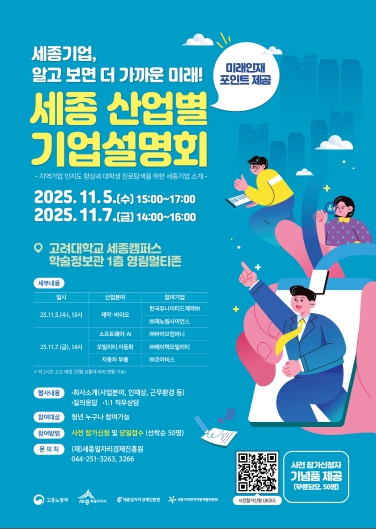 이달 진행된 설명회는 산업군별로 주제를 세분화해 전공과 연계된 맞춤형 프로그램으로 구성됐다. 제약·자동차·IT·융복합 등 세종의 주요 산업군 기업들이 대학을 직접 찾아가 산업 트렌드와 채용 정보를 전하는 ‘캠퍼스 현장형 설명회’ 형식으로 진행돼, 학생들의 높은 관심과 호응을 얻었다.