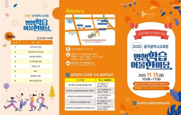 광주시교육청금호평생교육관은 오는 15일 광주시교육청학생독립운동기념회관 야외 일원에서 시민 등을 대상으로 ‘2025 광주광역시교육청 평생학습 어울 한마당’을 개최한다.