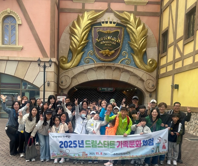 순천시 드림스타트는 지난 8일 아동과 보호자 50여 명을 대상으로 부산 롯데월드 어드벤처에서 ‘가족 문화 체험 프로그램’을 운영했다고 밝혔다.
