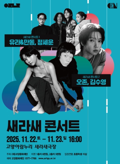 (재)고양문화재단은 소극장 기획공연 시리즈 ‘2025 새라새 ON 시리즈’의 11월 프로그램으로, 감각적인 싱어송라이터들을 만날 수 있는 '새라새 콘서트 1~2'를 11월 22일과 23일 양일간 고양아람누리 새라새극장에서 개최한다.