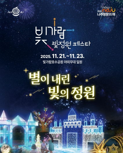 나주시는 오는 11월 21일부터 23일까지 3일간 빛가람 호수공원 일원에서 ‘별이 내린 빛의 정원’을 주제로 ‘2025 빛가람 빛정원 페스타’를 개최해 시민과 함께하는 늦가을 야간축제의 낭만을 밝힌다.