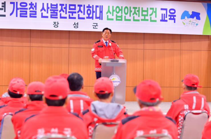 장성군이 지난 6일 오전 군청 아카데미홀에서 산불전문진화대원 34명을 대상으로 가을철 산업안전보건 교육을 실시했다.