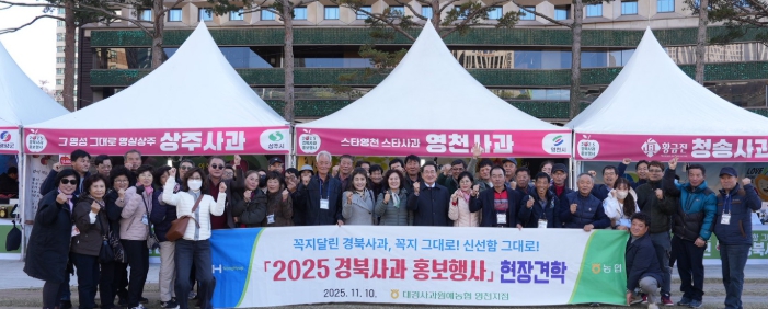 영천시는 10일 서울시청 광장에서 열린 ‘2025 경북사과 홍보행사’ 개막식에 사과 재배 농가 80여 명과 함께 참석해, 영천사과의 우수성을 홍보했다고 밝혔다.