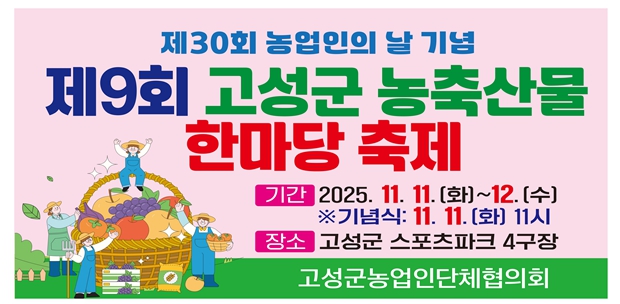 고성군은 오는 11월 11일부터 12일까지 고성군스포츠타운 4구장에서 ‘제30회 농업인의 날 기념, 제9회 고성군 농축산물 한마당 축제’를 개최한다.