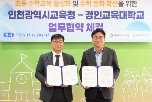 인천광역시교육청은 12일 초등 수학교육 활성화와 수학 문화 확산을 위해 경인교육대학교와 업무협약을 체결했다고 밝혔다.