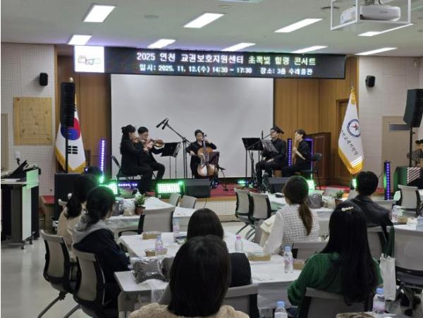 경기도연천교육지원청 교권보호지원센터는 2025년 11월 12일 연천교육지원청 3층 수레울관에서 교원의 정서 회복과 마음 치유를 위한 '초록빛 힐링 콘서트'를 진행했다.