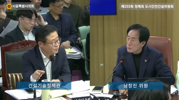 서울특별시의회 도시안전건설위원회에서 의정 활동 중인 남창진 의원(국민의힘, 송파2)은 12일 소관기관인 서울시 도시기반시설본부 시설국과 건설기술정책관 2025년 행정사무감사에서 탄천변 동측도로 구조개선 현장의 우회도로의 안전관리와 교통처리 등을 주문했다.