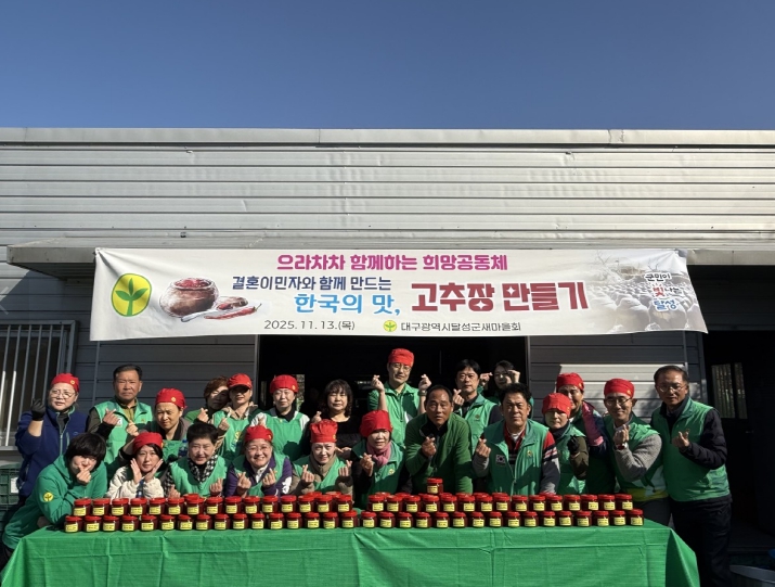 오의수 새마을지도자달성군협의회장은 “사랑과 정성으로 만든 고추장이 이웃 간의 마음을 잇는 매개가 되길 바란다”며 “서로의 문화를 이해하고 함께 어울리는 시간이 계속되길 기대한다”고 전했다.