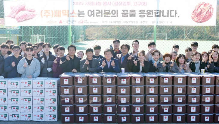 ㈜쎄믹스는 14일 광주시 남부 무한돌봄 행복나눔센터에 김장김치 2천400박스(8㎏), 고구마 2천500박스(5㎏), 백미 300포(10㎏) 등 각종 농산물 1억 5천만 원 상당을 전달했다.