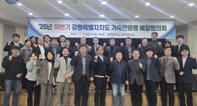강원특별자치도 동물위생시험소는 11월 14일 ‘2025년 하반기 강원특별자치도 가축전염병 예찰협의회’를 개최했다고 밝혔다.