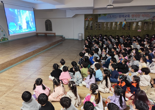 구미도시공사 4단지하수처리팀은 지난 13일 관내 유치원 어린이들을 대상으로 인공지능(AI)을 활용해 자체 제작한 환경동화“리오와 클리니의 물정화 대모험”을 상영하고 환경교육을 진행했다.