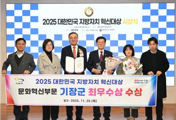 기장군이 지역 문화발전에 기여한 공로를 인정받아 ‘2025 대한민국 지방자치 혁신대상’에서 문화혁신 부문 최우수상을 수상했다고 20일 밝혔다.