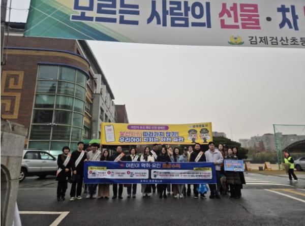 김제시는 25일 김제경찰서와 함께 등·하교 시간대 아동 대상 범죄 예방을 위한 ‘어린이 약취·유인 예방 합동 캠페인’을 실시했다고 밝혔다.