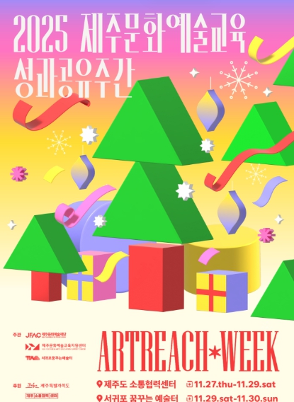 제주문화예술재단은 오는 27일부터 30일까지 4일간 제주도 소통협력센터(제주시 관덕로 44)와 서귀포 꿈꾸는 예술터(서귀포시 천제연로 164)에서 2025년 제주문화예술교육 성과를 도민에게 공유하는 문화예술교육 축제인 '아트리치위크'를 운영한다.